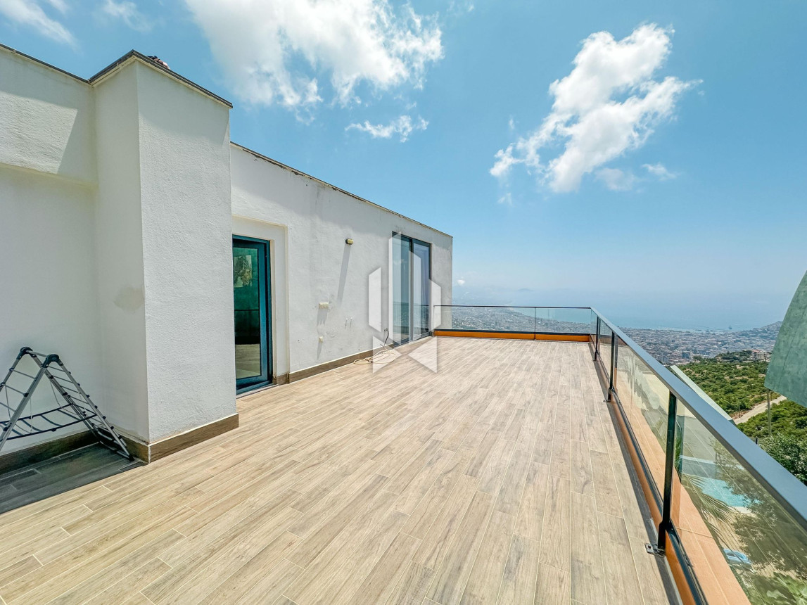 Дуплекс-вилла 5+1 с панорамным видом на море и крепость в районе Тепе