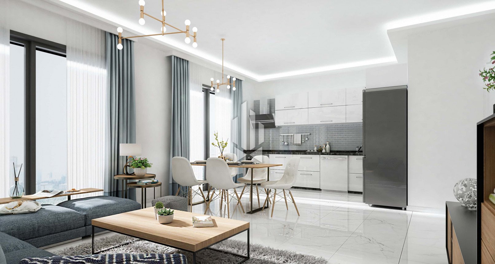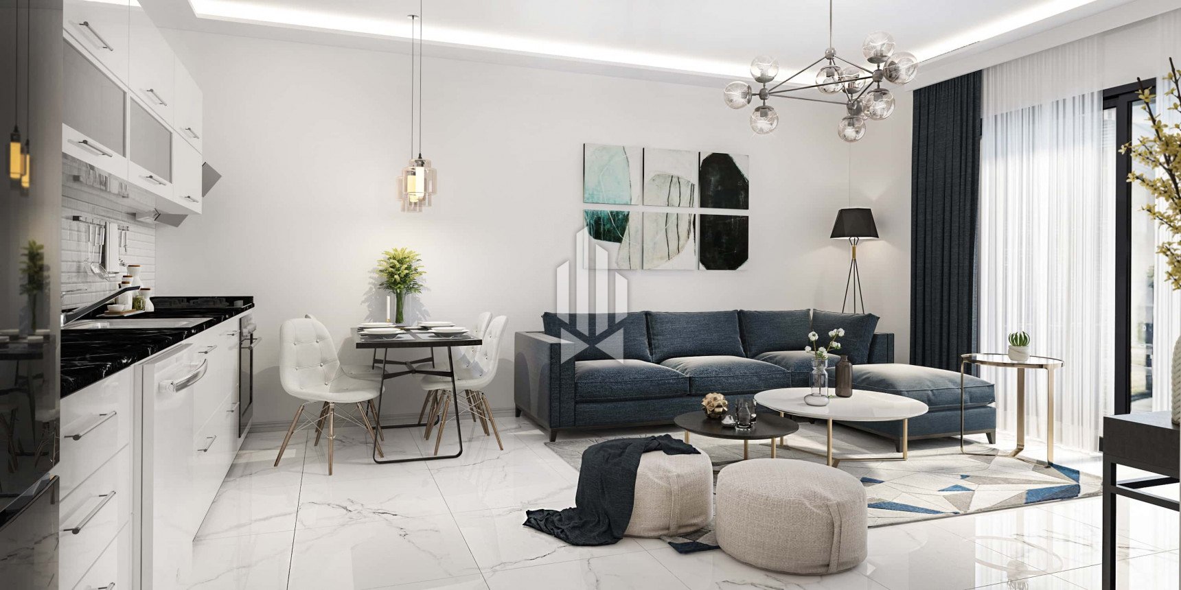 Жилой комплекс располагается на участке площадью 5 435 кв.м, состоит из двух девятиэтажных блоков, включающих уютные квартиры планировок 1+1, 2+1, а также комфортные и просторные двухэтажные дуплексы 2+1, 3+1, 4+1.